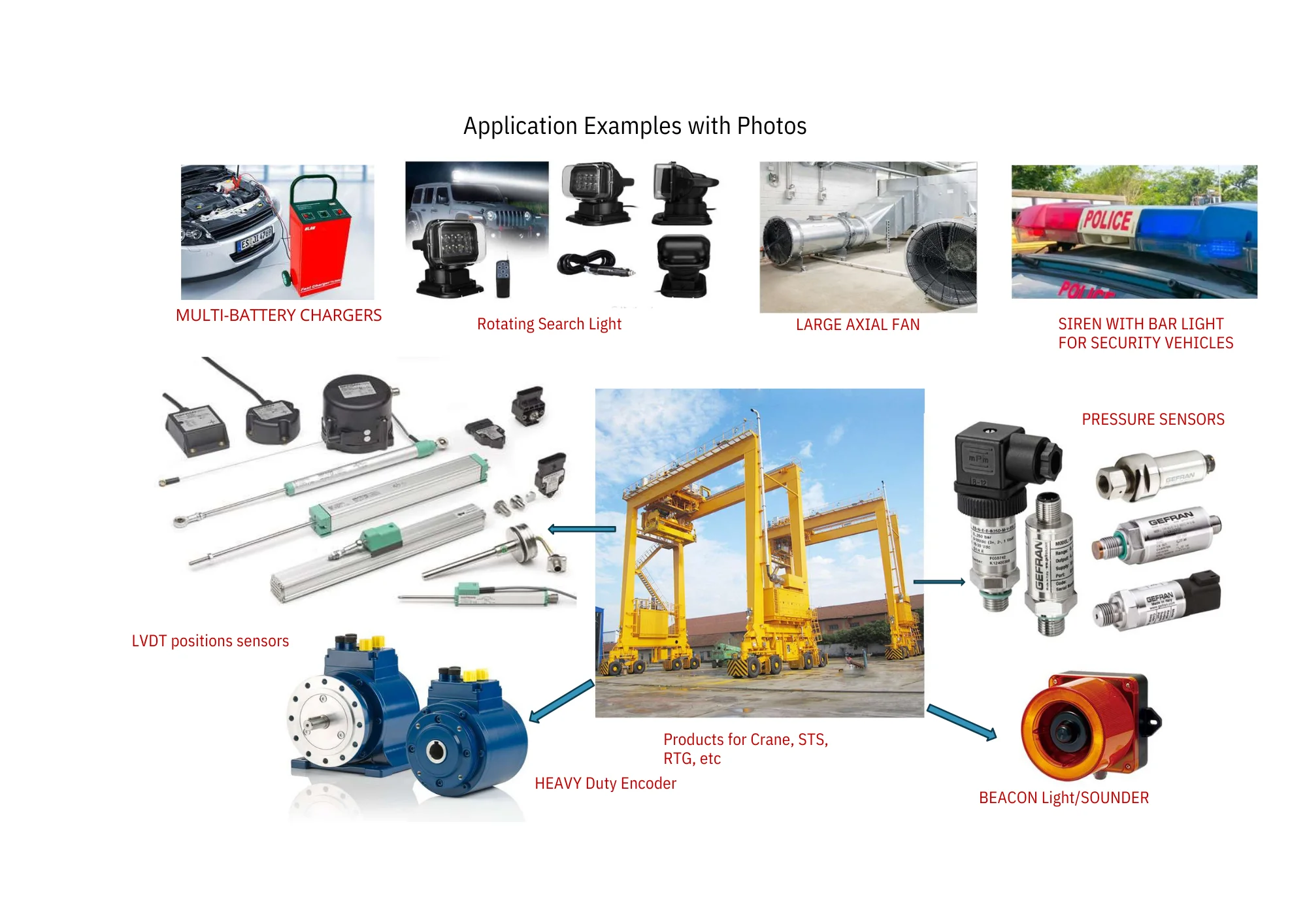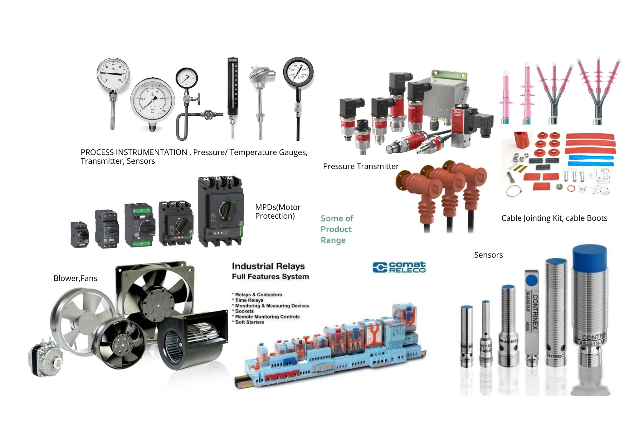 Sensors, Machine & Heavy Duty Encoders, Joystick Controllers, Pull Rope, Belt Sway switches, Relays, SSRs, Timers, Production/Hour Counters.